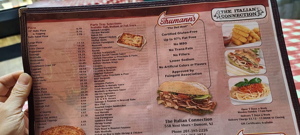 Italian Connection Pizza, located in Dumont, NJ, offers a variety of Italian dishes with a focus on delicious pizzas. They provide delivery, takeout, outdoor seating, and catering services, making it convenient for all customers. The menu includes a wide selection of sandwiches, salads, appetizers, and snacks, such as the popular Baby Pizza and Buffalo Chicken Wings. The fresh ingredients and flavorful combinations make every bite a delightful experience. With options for kids and groups, this casual dining spot is perfect for lunch or dinner. Don't miss out on trying their signature pies and traditional Italian flavors at Italian Connection Pizza.